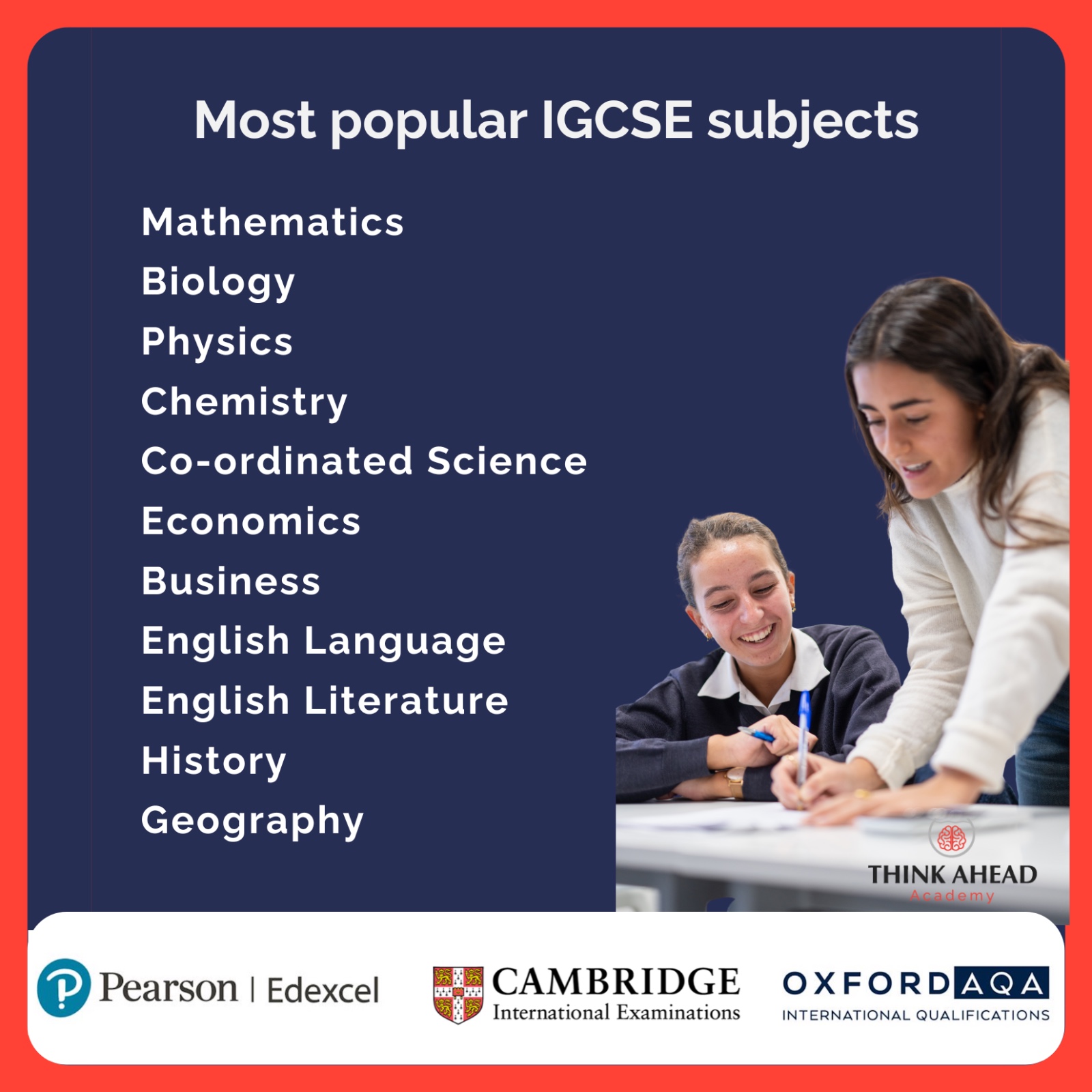 This is why, at Think Ahead Academy, our approach for IGCSE support typically combines: